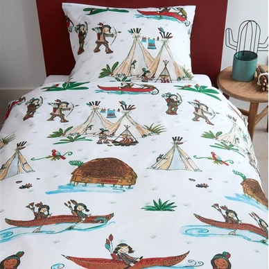 Diese hochwertige Kinderbettwäsche von der Firma Beddinghouse ist verziert mit einem Indianer-Druck und hat einen weißen Grundton. Sie besteht zu 100% aus Baumwolle in welchem Ihr Kind angenehm schlafen wird. Sowohl Bett- als auch Kissenbezug lassen sich praktisch durch einen Reißverschluss verschließen. Die Bettwäsche ist in verschiedenen Größen erhältlich und wird inklusive eines Kissenbezugs (80 x 80 cm) ausgeliefert. Dieser Bezug passt wunderbar in ein Jungenzimmer.