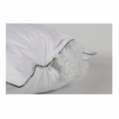 Das Kissen Cinderella Mellow 2.0 hat eine Füllung aus 100 % Thermosoft-Synthetikkugeln, die mit Healthguard behandelt wurden. Dadurch bietet das Kissen dauerhaften Schutz vor Bakterien, Pilzen und Hausstaubmilben. Wenn Sie also empfindlich darauf reagieren, ist dies das perfekte Kissen für Sie. Das Kissen hat auch eine Außenseite aus 100% Perkal-Baumwolle, wodurch sich das Kissen sehr weich und bequem anfühlt, mit guter Atmungsaktivität und guter Feuchtigkeitsaufnahmefähigkeit. Damit ist das Kissen ideal für den Sommer. Das Kissen kann bei maximal 60 Grad gewaschen werden und hat eine Größe von 60 x 70 cm.