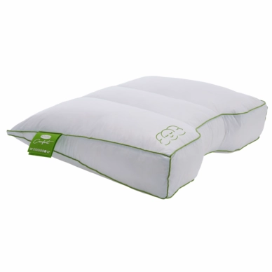 Der Silvana Comfort Green ist die stärkste und dickste Version der Silvana Comfort Serie. Das Kissen eignet sich besonders, wenn Sie auf einer festen Matratze schlafen und eine überdurchschnittlich große Figur haben. Das Kissen ist mit Comforel® Soft gefüllt. Dies sind hochwertige und sehr weiche Kunstfaserbälle. Die Füllung ist in drei Fächer unterteilt. Das mittlere Fach ist etwas weicher gefüllt als die Seitenfächer für eine perfekte Kopfhaltung in jeder Position. Die Füllung kann über den Reißverschluss oben dosiert werden. Die Nackenkerbe sorgt dafür, dass sich das Kissen sanft an Kopf und Nacken anschmiegt, sodass die Halswirbel entspannt liegen. Der Bezug des Kissens oder Inletts besteht aus 100 % Baumwolle und wurde mit Sanitized® behandelt. Dadurch ist das Kissen hausstaubmilbenresistent und für Menschen mit einer Hausstaubmilbenallergie geeignet. Die Sanitized®-Behandlung macht das Kissen auch resistent gegen Schimmel und Bakterien. Der Silvana Comfort Green ist bei 60 Grad Celsius waschbar. Waschen Sie das Kissen nur bei Bedarf.
