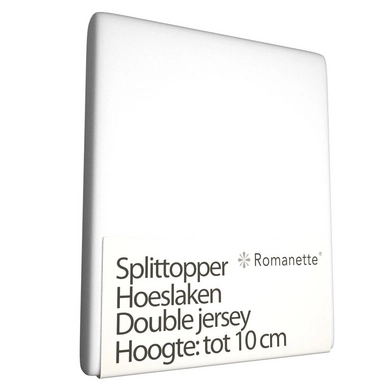 Dieses schöne Bettlaken von der Marke Romanette besteht aus elastischem Double Jersey, welches aus 100% Baumwolle hergestellt wird. Ein Single-Split Spannbettlaken verfügt über eine mittige Spaltung an der Oberseite, diese ermöglicht es die Betthälften unabhängig voneinander (elektrisch) anzupassen. Dieses Spannbettlaken ist geeignet für Topper Matratzen (auch Topdeck Matratzen genannt) mit einer Höhe von bis zu 10 cm, die oft auf einer Boxspring liegen. Das Spannbettlaken besitzt einen weißen Farbton, ist jedoch auf Bedsupply.de auch in anderen Farben und verschiedenen Größen erhältlich.